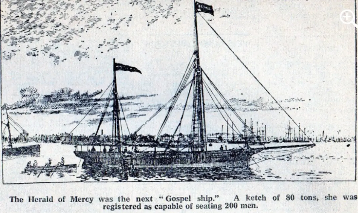 In 1887, he replaced older boats such as the Annie and a wherry (serving the Portsea to Porchester route) with two new schooners: The Mystery and Herald of Mercy. These ‘Gospel Ships’ visited ports, lightships and lighthouses across the UK and France, distributing food, knitted clothing, gospel tracts and hosting onboard meetings. They became floating missions in their own right.